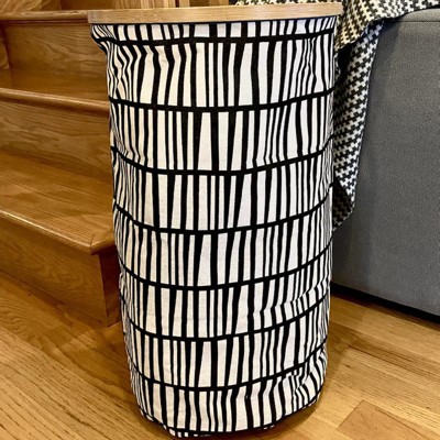 This delightfully versatile hamper features a collapsible coated canvas held in place with a sleek bamboo rim; Neatly corral stray clothing and linens inside, and swiftly collapse for portability; Can be utilized to carry and stow laundry, and easily collapsed for space saving storage; Hamper is made from coated canvas and bamboo; Hamper measures 14" L x 14" W x 23" H