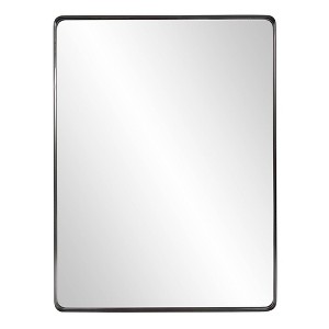 - This simple minimal design is elevated with a simple rectangular mirror trimmed in a flat, shadow box styled stainless steel frame in a brushed black