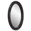 The Queen Ann Mirror features an antique black finish. The oval frame is made from wood and is accented with a beaded textured inset and decorative adornments on each side of the frame. For more added detail the mirror features a one inch bevel. Its Traditional style makes this mirror a favorite for bringing some flair to your decor. This simple yet stunning piece would be a great addition to any room. It is a perfect focal point for an entryway, bathroom, bedroom or any room in your home. D-rings are affixed to the back of the mirror so it is ready to hang right out of the box in either a horizontal or vertical orientation! Dimensions 33H x 25W x 2D