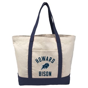 Howard University Bison Arched School Name Canvas Tote Bag With External Pocket, Reusable Shoulder Bag for Shopping, School, Beach