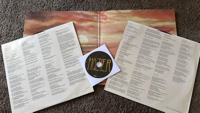 oh my goodness. this album is literally amazing, just by itself. at the time, i got this for only $20 USD. i didn’t expect it to be like this, though. it is a gatefold, and double LP. fun fact- it came with 2 cds. don’t know if each of them have the full album, but it was a great surprise. each vinyl sleeve has the lyrics of what tracks are on the record on the back. love this album, love the surprises, totally recommend for all genre lovers. thank you sir hozier.