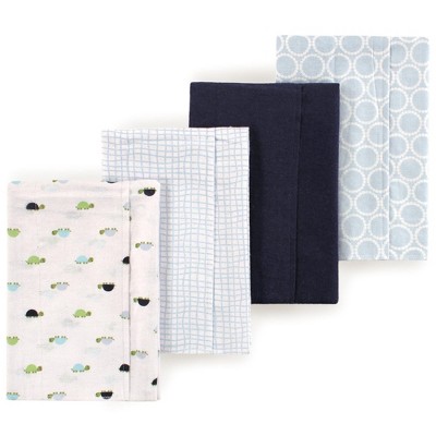 Hudson Baby Cotton Flannel Burp Cloths 4-Pack, Little Sea Turtle, One Size