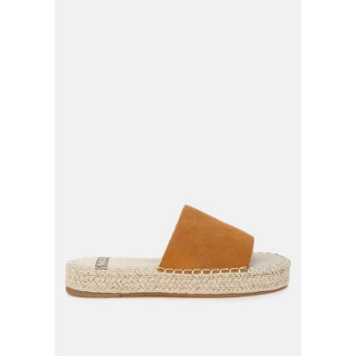 Make a chic addition to your footwear rotation with these espadrille flatforms. Crafted with real soft leather, they feature a convenient slip-on silhouette and a cushioned insole to retain all day comfort. Pair these with your varied casual fits to ace the look. Type: Flatforms Upper Material: Real Soft Leather Outer Sole: TP Rubber Open Round Toe Slip On Style Espadrille Flatform Heel Comfortable Cushion Insole Heel Height: 1 inch RCSH5459