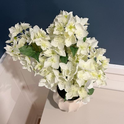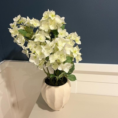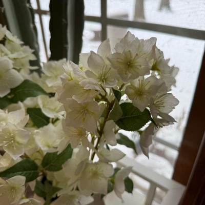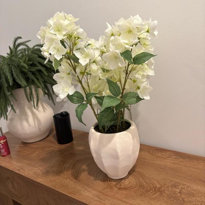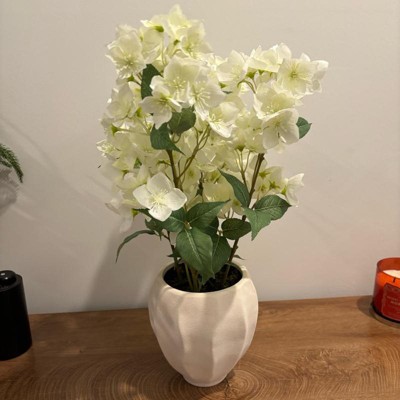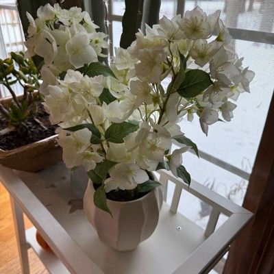 [This review was collected as part of a promotion.] This is a really lovely and versatile hydrangea arrangement from Threshold. The cream colored hydrangeas match perfectly with the cream ceramic pot. The flowers look very realistic and can be put out year round without having to worry about your flowers not lasting. The arrangement is full and thick of hydrangeas.