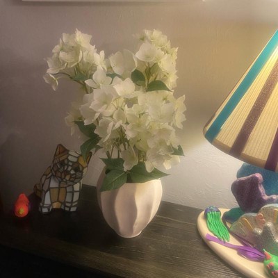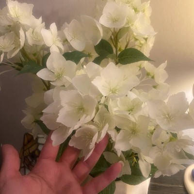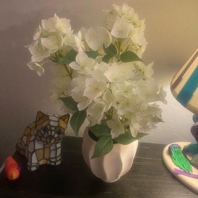 [This review was collected as part of a promotion.] I love this cream, hydrangea arrangement in a cream vase by threshold. This looked so realistic, and it fit where I wanted it to be. It is very heavy, so it will not fall over which is great and doesn't give the look of being super fake. I love hydrangeas, and this is making me very happy that I could have up all year round if I wanted to.