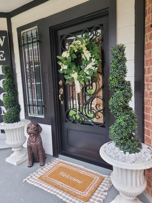 for the price it’s good quality! I love that it came with a bow attachment too! I spruced mine up a bit for spring by adding another bow on top of the one it came with but I will definitely keep this wreath up all spring and summer long. I would recommend picking one up in store instead of online or drive up because I noticed in the store that not all of them are exactly the same so note that detail if you’re picky like me, other than that the wreath is lovely!