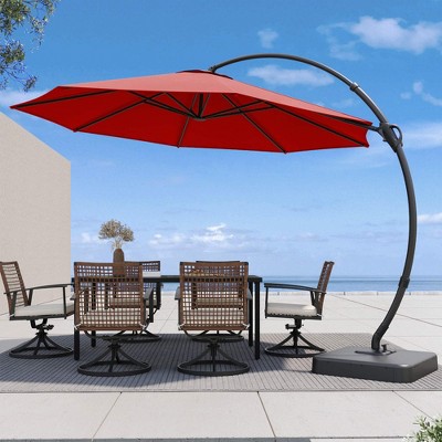 Enjoy extended shade coverage with this 11ft square cantilever umbrella, perfect for patios, decks, and poolside spaces. The smooth 360-degree rotation and tilt function allow effortless adjustment as the sun moves. Designed with a double-vented canopy for improved airflow and stability, and supported by a strong aluminum frame for durability. Includes a protective cover to help extend product life. If you need a sturdy umbrella base, you can search for TCIN 1001821768 and purchase it!