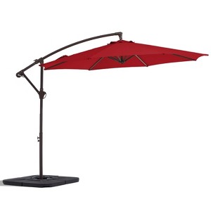 Hyleory 10ft Patio Cantilever Umbrella with Cross Base, Heavy-Duty Offset Hanging Umbrella with Crank for Patio, Deck & Poolside - Red