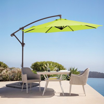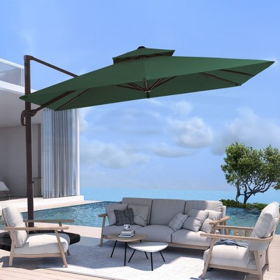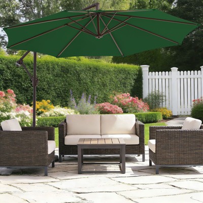 Hyleory 10ft Patio Cantilever Umbrella with Cross Base, Heavy-Duty Offset Hanging Umbrella with Crank for Patio, Deck & Poolside - AGreen