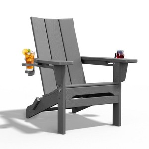 Product Name: Hyleory Grey Double Cup Holder Folding Adirondack Chair - HDPE Weather resistance,Stackable, Ergonomic Design