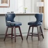 These barstools are designed to seamlessly transition from your kitchen to your living room, offering a comfortable seating option that blends seamlessly with your decor. Refined with a stunning nailhead trim seating, each barstool creates an exquisite contemporary appeal that brings incredible function to your kitchen nook or home bar. Our barstool set is complemented by a smooth rubberwood frame, creating a durable structure that ensures stability for you and your guests. Finished with a convenient 360-degree swivel function, this barstool offers a sophisticated design that enhances the style of any home.