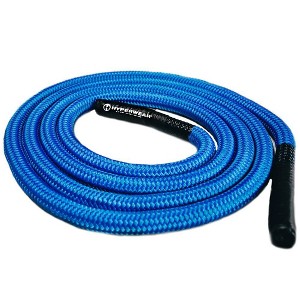 New dynamic advancement on battle rope training, a flexible metal core Hyper Rope® works in small spaces anywhere to deliver the intense core, cardio and calorie burning workout of a massive anchored 50ft battle rope. A patent pending weighted battle rope, the Hyper Rope has a central core of metal weights sealed inside layers of braided pure polyester yarns. The fluidity and balance of the added weight allows you to float your waves above the floor without any need for an anchor point. Much more than a typical rope, it gives you many more exercise movement options with the freedom of anchor-free battle rope workouts. Needs only 6 feet of space indoors or out and does not shed fibers like other ropes. Portable and easy to hang or store in a 14 in coil on a shelf. Two sizes available: the original (20ft, 16lb), and for demanding training the Hyper Rope ELITE (25ft, 19lb).