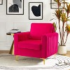 Pull together a glam-worthy living room with this modern chair. The velvet upholstery and eye-catching rich hue give this must-have chair a pop of sophisticated style. Vertical channel tufting and golden metal legs added depth to this glamour chair that effortlessly becomes the focal point in your living room. Perfect for a modern look with glam accents, this piece has a sturdy wood frame and features soft filling for an inviting feel. Add it to your room for a subtle touch of glam on its own. Versatile and elegant, this chair is ideally suited for a variety of decor styles in your living room, lounge room, or home office.Item size:32.5"Wx30.5"Dx35"H