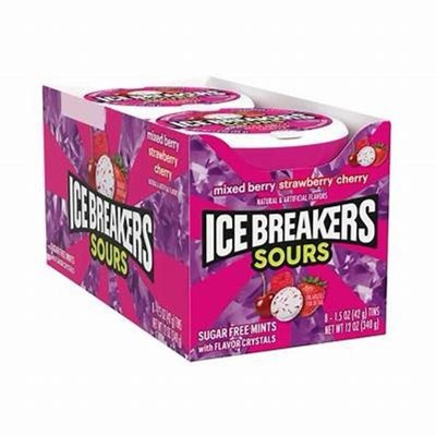 - Contains one (1) 1.5-ounce puck of ICE BREAKERS Sours Mixed Berry, Strawberry and Cherry Flavored Sugar Free Breath Mints