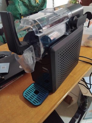 - EASY TO DISPENSE: Gently pull on the lever and this 48-ounce frozen drink machine dispenses directly into your cup and enjoy your favorite frozen drinks. The slushy machine is under 7 inches wide and 17.5 inches long to fit anywhere on your countertop.