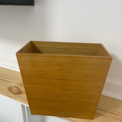 This item is beautiful even though I have used it for trash in my bathroom. The wood is just as shown in the picture and I bought a matching tray for above the toilet and they look great together. It is solid and doesn’t need to be dusted like other trash bins.
