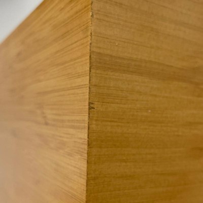 This waste can doesn’t look like the picture. It is a cheap veneer in a darker (think honey maple 90’s cabinets) and a different pattern. Upon arrival the corners were already chipped. I returned immediately.