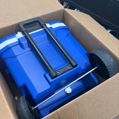 I have scoped out coolers throughly at a few stores prior to making this purchase. This particular cooler is by far the best you can find in this capacity range and at this price point. It fits a ton of drinks and plenty of ice. Large, sturdy wheels are very important to me and are definitely reliable in this cooler. Also important to me is the fact that the cover kind of snaps shut rather than loosely laying on top. The handle extends and retrackts smoothly - also a great feature. I am very happy this product overall.