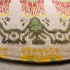 This round-shaped rug boasts a half-inch pile height, achieving a perfect balance of plush comfort underfoot and easy maintenance. The timeless design, inspired by the traditional patterns displayed in the image, adds a classic touch to your decor with its intricate motifs and rich color palette, including hints of vibrant reds, greens, and subdued blacks on a serene beige background.