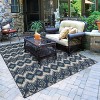 A: The rug is made from 100% polypropylene, which is known for its durability and weather resistance.