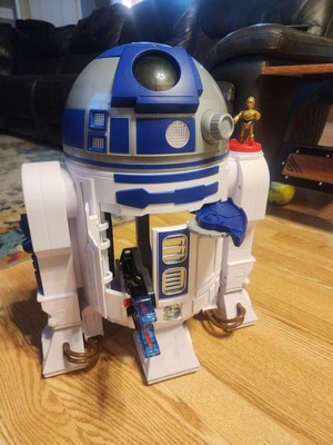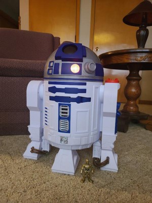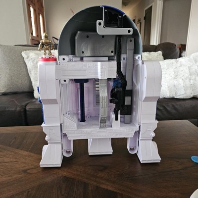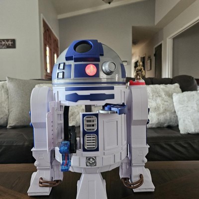 [This review was collected as part of a promotion.] As an R2D2 companion, this was a definite winner in the size category and interactive play. My 6-year-old did get a little confused that it was only half an R2D2 and that it would only roll back and forth. The playability is fine except when it comes to the disc shooter because you're supposed to be behind it. But you have to reach around the front to fire the disc which isn't exactly the easiest for a kid with how big this thing is. As a mom, I genuinely appreciate that there is a spot for the little discs to live.