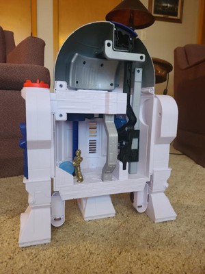 This toy is half. It’s not round. It doesn’t have the back. The back is flat. Very disappointing toy. My husband and I were in shock when we opened the box. It’s a falsification of the original toy and idea of R2D2. Just don’t buy it. The description doesn’t match the real toy. Highly recommended not to buy. It was a very disgusting experience. We are very disappointed