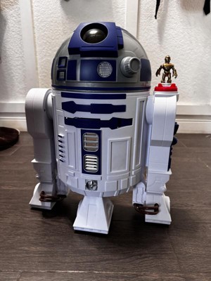 [This review was collected as part of a promotion.] The kids love Star Wars and R2-D2. So, they were super excited to play with R2-D2. R2-D2 does require some assembly. It is pretty straight forward. Just need to attach R2-D2's feet. There are two plastic coins and C3-PO key figure which was surprising heavy duty and feels like it is metal casted. R2-D2 itself is mostly hard plastic. R2-D2 has some fun features. You can roll R2-D2 around as it has wheels. If you turn the C3-PO, R2-D2 saw tool and claw hand will pop out. The claw hand can shot the plastic coins. R2-D2 also talks and has volumn contro (off, low, high). Back of R2-D2 is open. So, you can see how things move. There is two slots for the plastic coins. The C3-PO key figure can fall off easily. Even though you can roll R2-D2 arounds it is not that smooth and can tip. Overall this is a fun and interactive. The kids has a new buddy to hang out with.