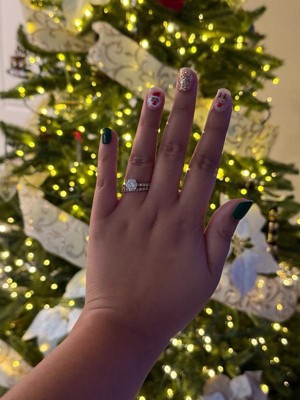 Holiday glam shines with ‘The Magic,’ short multicolored squoval nails designed with dimensional 3D accents that capture the spirit of the season. With IMPROVED adhesive, these no glue press ons stay flawless for up to 10 days. Get holiday-ready in seconds with the EASIEST mani that sparkles all season long! Safe on natural nails and so easy to apply—just peel, press & go for instant holiday magic. Press on nails that look and feel like the real thing.