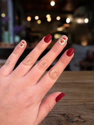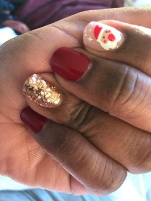 [This review was collected as part of a promotion.] Overall these nails are beautiful and I love not having to use glue. I appreciate the peel and stick because it is less messy and the nail had full coverage to stick. The only downside is my nails are narrow and most of the nails are wider and not much of a variety to ensure a nice fit. I do appreciate how there are no gaps once on the fingernail. They lasted for 6 days before one fell off. They lasted through my kid pulling on them, dishes and bath time. The feel of them are nice including the cute reindeer nose being raised. Overall would buy this brand in the future.