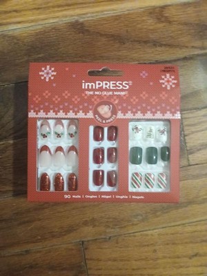 [This review was collected as part of a promotion.] How cute are these imPRESS Holiday Gift Set Press On Nails the colors and designs are perfect for the holiday. I had to give them to my mom because they were to short for me I have longer nail beds. But I love how quick they are to put on. I did my mom’s nails in less than 5 minutes. No glue, no mess easy to apply if you’re on the go. On the next set for my mom I am going to try this video I seen on tik tok to keep the sticky’s lasting longer. But overall these were great :)!!!!!