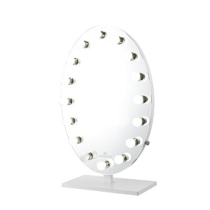 Overview Timeless elegance is achieved with our brand new Heiress PLUS Vanity Mirror. Get all-day flawless lighting with our classic Hollywood style bulbs or high-quality LED lightstrip providing dimmable ultra-bright studio lighting. Your glam room is bound to be forever chic with our one-of-a kind oval shaped mirror. (Powered by US standard plug-in cord.)