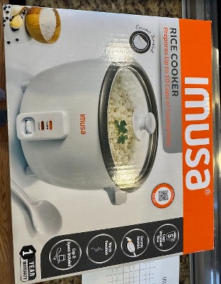 [This review was collected as part of a promotion.] I've been testing out the IMUSA 5-Cup Rice Cooker, and honestly, it's a really solid little machine. It's not fancy or high-tech — just one button and done — but that's actually what I like about it. You add your rice and water, press the switch, and about 20 minutes later you've got hot, perfectly cooked rice. No guessing, no watching the stove, no mess. The first time I used it, I made plain white rice, and it came out surprisingly fluffy. The texture was spot-on — not sticky or soggy like some smaller cookers can get. The next time I tried jasmine rice, and it handled that just as well. Cleanup was quick, too; the nonstick pot wipes clean with hardly any effort, and the scoop and measuring cup it comes with are simple but useful. It's a good size for my family when we just need rice as a side dish, but I wouldn't call it "large batch" friendly — this is definitely more for everyday cooking than for big gatherings. I've used bigger, more feature-heavy rice cookers before, but this one gets points for being lightweight, compact, and dead simple to operate. It also doesn't take up much counter space, which is a plus. Would I buy it? Yeah, I would — especially for how easy it makes weeknight dinners. Would I recommend it? Definitely. If you just want rice done right without extra buttons or complicated settings, this is exactly that. Straightforward and dependable.