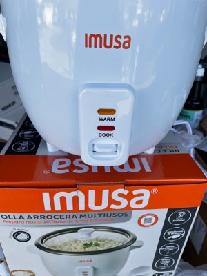The IMUSA 5 Cup Electric Rice Cooker will make the perfect rice dish at the flip of a switch. This rice cooker is made of aluminum with a bright and modern white exterior finish that makes it the perfect fit for any kitchen. The IMUSA Rice Cooker has a capacity for 5 cups of uncooked rice. Cleaning the IMUSA Rice Cooker is easy with the removable Ceramic nonstick pot which prevents your rice and other foods from sticking, and its included serving spoon and measuring cup are the perfect complimentary tools for easy cooking. This rice cooker has cool touch side handles and knob enabling easy operation and transport, and its transparent lid allows you to monitor food while it's cooking. The "warm" feature of the IMUSA Rice Cooker keeps your foods at perfect serving temperature once the cooking cycle is completed, so you´ll always be able to enjoy delicious and warm meals. Use this rice cooker to prepare delicious rice, oatmeal, stews, quinoa, grains, and more. Whether you use it for a small kitchen, college dorm life, and camper and RV traveling, the IMUSA Rice Cooker excels. Trust the IMUSA Rice Cooker as your go-to kitchen helper. It will surely become your kitchen's beloved companion simplifying and enhancing your culinary endeavors.