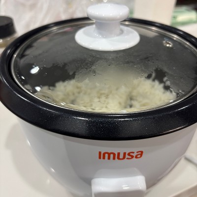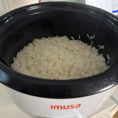 [This review was collected as part of a promotion.] MUSA 5-Cup Ceramic Rice Cooker – Perfect for Everyday Rice & Japanese Curry Nights: I bought this IMUSA rice cooker specifically to make rice for Japanese curry and it definitely delivered! For the price point it's simple reliable and does exactly what you expect — cooks fluffy rice without any hassle. Once I rinsed and measured the rice I just pressed the single switch and walked away. The rice came out evenly cooked soft and perfect for soaking up rich curry sauce. It doesn't have advanced settings like "sushi rice" or "quick cook" but honestly for standard white rice it nails it. The ceramic coating makes cleanup super easy with no scraping stuck grains off the bottom and it feels like a healthier nonstick option so just be careful to use only the included spoon or a silicone utensil to avoid scratches. As soon as the rice finishes cooking it automatically switches to Warm which kept the rice fluffy while I finished prepping the curry without drying out or browning at the bottom. It's very beginner friendly with one button Cook or Warm the lid handle stays cool and the cooker is lightweight and easy to move. Pros: fluffy consistent rice every time ceramic nonstick pot cleans easily great value for the price auto warm keeps rice fresh while cooking sides good size for families or batch cooking. Cons: only one cooking setting no specialty rice modes cord is a bit short exterior and handles can get warm.