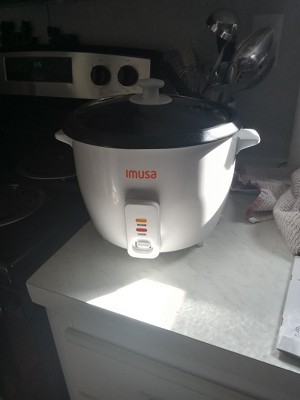 [This review was collected as part of a promotion.] I received this product free for an honest review. I was surprised to read how long IMUSA has been around as I had never heard of them before. The 10 Cup rice cooker is a simple design, but in good ways. It is lightweight and easy to move for storage. There is only one switch to cook and once finished the rice cooker automatically switches to warm. There are no timers and no auto off. It seems to me that a spring in the base triggers the cooker to switch from cook to warm. I followed the instructions for water to rice ratio from the rice package and it was too much (water sprayed out of the vent hole in the lid), so next time I will follow the cooker's instructions. The instructions did warn of this so I would have followed them in the first place.