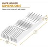 - IN DRAWER KNIFE ORGANIZER: No more keeping a clunky knife block out on your counter. (Measure your drawer and knife heights to see if it’ll fit for you.) The steak knife block fits a total of 5 large knives + 6 small ones, or 16 short knives.