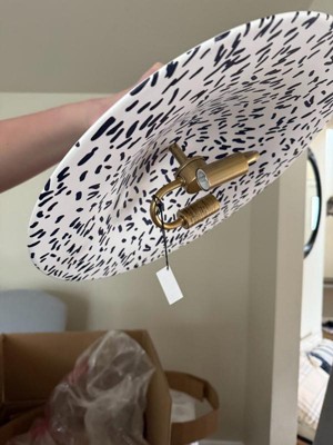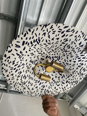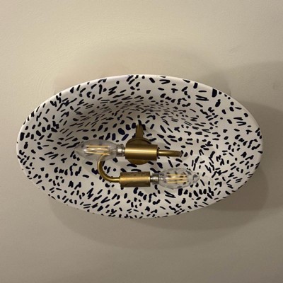 [This review was collected as part of a promotion.] This is a really cute, whimsical light fixture! I used this to replace a really dated fixture that wasn’t my taste, and this is such a fun replacement. My home is modern and colorful and this fits the vibe so well. The sprinkle pattern is navy blue but can definitely pass for black if you’re not looking closely. Installation was pretty easy, although the fixture didn’t come with screws aside from the grounding screw, but thankfully we had some on hand. This is my second Quoizel metal fixture and I would absolutely get more in the future. The quality is excellent.