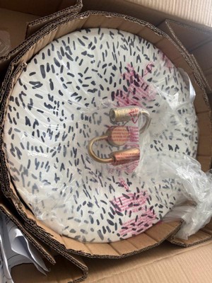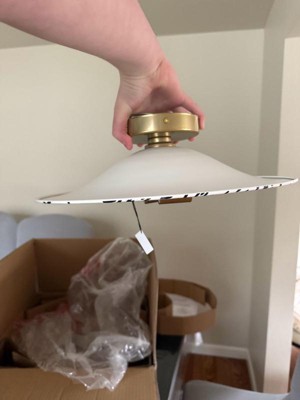 [This review was collected as part of a promotion.] I love the design of this light fixture! I think it works well with a popcorn ceiling, which is no easy feat! The pattern reminds me of Kate Spade’s interior design style. It’s playful, a bit maximalist, and chic. Installing may be a two person job, but it wasn’t much more difficult than any other ceiling light. I’d also note that the design keep the bare bulb exposed, which some people may not like. Some may want to purchase a dimmer bulb for this reason.