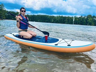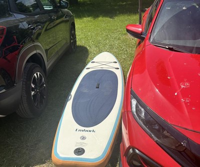 I searched everywhere looking for an inflatable paddle board that was worth the investment. Places like dicks had their cheapest board for $299 which is more expensive than just renting one for the day at our local boat shop. Thank god for Google, because as soon as I searched “paddle board” this option popped up from Target and I was excited to give it a try, despite the 50/50 reviews. We bought 2 just to see if they would have any of the issues described in the reviews and both worked perfectly! We were out on the water for 6 hours and spent less money than renting and we actually got to enjoy the time since we weren’t bothered by a return time if we did rent. If you are looking for a decent paddle board just for the occasional trip to use it, I highly recommend this product!