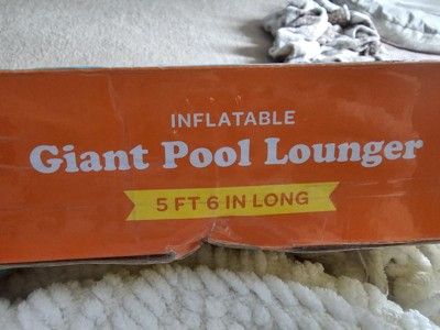 This inflatable lounger is 5’6” long, perfect for pool or lake lounging. I’m 5’5 and was able to lay comfortably in this lounger. This inflated pretty quickly with an air compressor. The material feels thick, will not puncture easily. The pillow is a nice addition, it doesn’t adhere to the lounger however so I worry about losing it in the lake this summer. We plan to use this to float our 3 young kids out to the swimming raft. I wish there rope holders built into the sides to be able to tie this up to the dock/raft. Overall, very happy with this product!