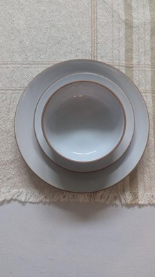 [This review was collected as part of a promotion.] I love the way these plates look. The color scheme and the shapes of the plate make bowls. The one downside is that the edges of the plates and bowls have this brown lining that easily chips. So when handwashing or storing the plates it can easily chips