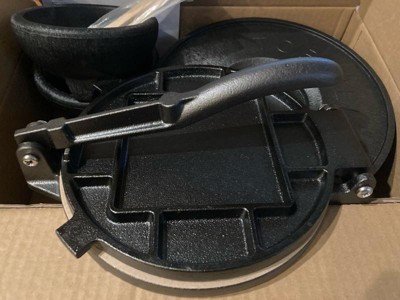 [This review was collected as part of a promotion.] Nice solid cast tortilla press. I wish the side dishes were stone or something besides plastic as we are trying to rid our house of plastic. Only complaint is there are no instructions for use- we've never used a pressed before and it talks about its heat resistance but everything we see online is to press and then place in a pan so why does it matter if you season the cast or that it is able to heat to 500 degrees?