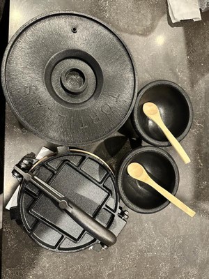 [This review was collected as part of a promotion.] Nice set! The cast iron quality seems very nice. I only wish it was pre seasoned. Having to season it is a pain! The bowls are cute. The tortilla holder smells strong of plastic, though. Hopefully that goes away!
