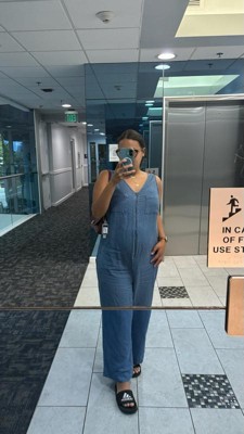 [This review was collected as part of a promotion.] Very nice maternity jumpsuit. Easy to wear with soft and comfortable fabric. I like the fit on it that is flowing and has room to move around in. My overall impression is great. However, I don’t like the v shape in the back of the neck.