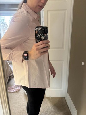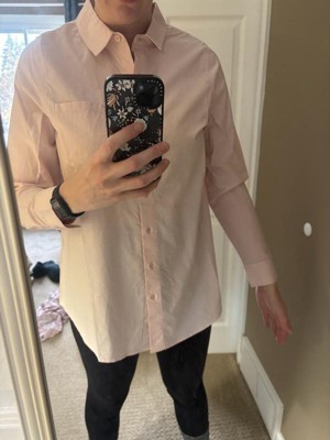 [This review was collected as part of a promotion.] I received this shirt for testing purposes, and I’m genuinely impressed with the quality. The fabric feels soft, lightweight, and comfortable—perfect for everyday wear or layering. Even though it came a bit wrinkled (typical for cotton poplin), it irons out nicely and keeps a clean, crisp look throughout the day. The fit in size XS is flattering without feeling tight. I also appreciate the small details like the structured collar, chest pocket, and slight gathers at the shoulders, which make it look more elevated than a basic button-down. It’s versatile enough for work, casual outfits, or pregnancy styling, which Ingrid & Isabel is known for. Overall, this is a staple wardrobe piece that feels well-made and worth having. I’d definitely recommend it!