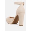 The platform sandals are chic and would make great transition shoes with their interchangeable ankle strap feature. The chain embellished ankle strap instantly takes the sandals from work to play with the subtle bling touch. Upper Material: Microfiber Outer sole: TPR Closed Rounded Toe Platform High Block Heels Back Panel Detail Interchangeable Chain Ankle Strap Lightly Cushioned Sole SH4414