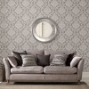 A full roll of this product is 20.5 inches wide and 396 inches long. A full roll can cover up to 56 square feet depending on the design match and pattern repeat. A sample of this product is 8 inches by 11 inches. Ink damask grey mist takes inspiration from traditional handmade techniques. Inspired by an Indonesian decorative technique in which warp or weft threads are tie dyed before weaving. This design combines classic archival damasks with organic style finishes to create a contemporary look. Natural soft grey is highlighted with neutral creams to create a pure and calming atmosphere. Quick & easy 'Paste The Wall' application (no decorating table or pre-cutting required). Non-woven wallpaper, won't shrink or expand overtime. Offers a smooth, untextured finish. Straight match with a 21 inch pattern repeat.