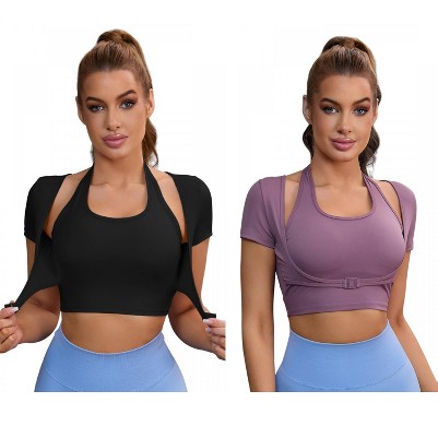 INSPIRE CHIC 2 Pcs Women's Halter Neck Short Sleeve Workout Crop Front Closure Slim Fit Fitness T Shirts - 2 of 4INSPIRE CHIC 2 Pcs Women's Halter Neck Short Sleeve Workout Crop Front Closure Slim Fit Fitness T Shirts - 3 of 4INSPIRE CHIC 2 Pcs Women's Halter Neck Short Sleeve Workout Crop Front Closure Slim Fit Fitness T Shirts - 4 of 4