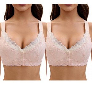 INSPIRE CHIC Front Closure for Women's Lace Full Coverage V Neck Wirefree Adjustable Straps Soft Bras 2 Packs