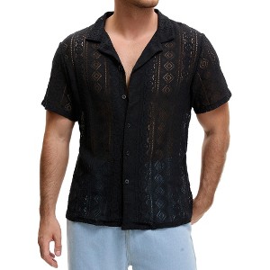 INSPIRE CHIC Men's Camp Collar Short Sleeve Button Down Party Mesh See Through Shirts - 1 of 4